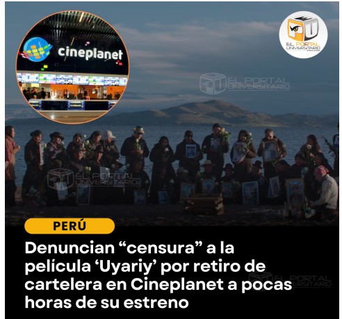 Desde las trincheras de la comunicación popular, alzamos nuestra voz de protesta frente al repudiado acto de censura política y sabotaje cultural perpetrado por la cadena Cineplanet (Grupo Intercorp) contra el documental Uyariy. Este hecho no es un incidente comercial aislado, ya que es un eslabón más en la cadena represiva que caracteriza al mafioso Estado peruano y a sus poderes e instituciones, así como a la lumpen burguesía al viabilizar políticas de explotación, opresión y domesticación contra el pueblo.