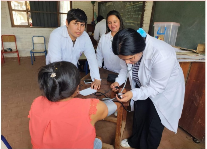 La priorización de esta comunidad responde a criterios de aislamiento, vulnerabilidad y ausencia de atención médica estructurada. La distancia respecto a centros urbanos y la falta de infraestructura básica la convierten en un escenario propicio para la implementación de acciones de extensión universitaria orientadas al fortalecimiento de la Atención Primaria de Salud (APS). El impacto esperado de la intervención incluyó la mejora del acceso a atención médica básica, la promoción de educación sanitaria en temas críticos (hipertensión, diabetes, dengue, Chagas, vacunas, lavado de manos) y el fortalecimiento de capacidades locales mediante la entrega de materiales educativos y la capacitación directa a docentes de la unidad educativa